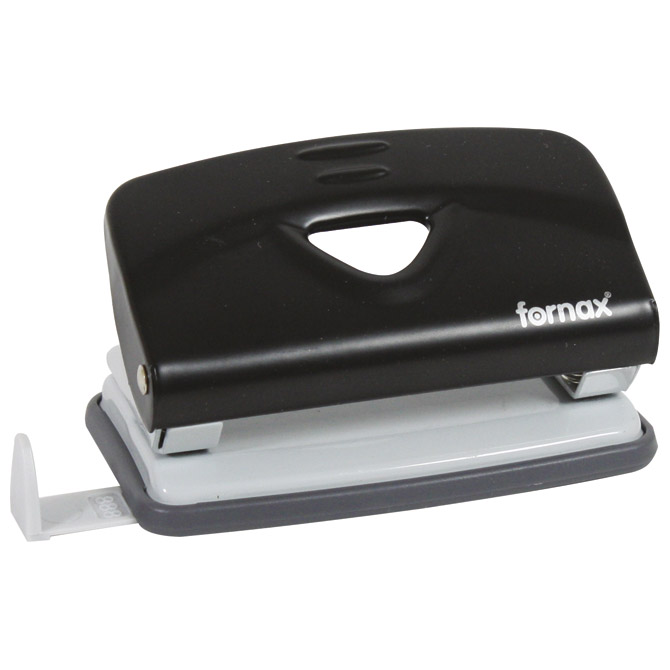 2 rupe; buši do 10 listova ili debljina 1 mm; razmak između rupa je 80 mm; sa spremnikom za otpadni papir; ima plastični graničnik