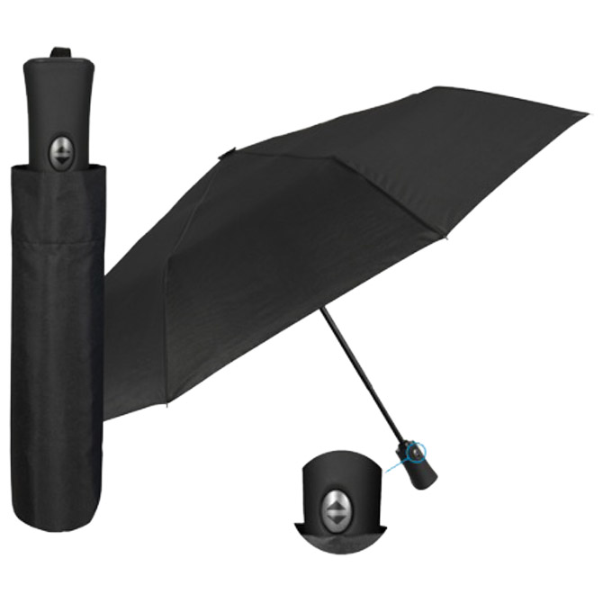 Kišobran automatik (otvaranje+zatvaranje na gumb) sklopivi s gumiranom drškom Promo Mini Lovers Perletti 96009-01 crni