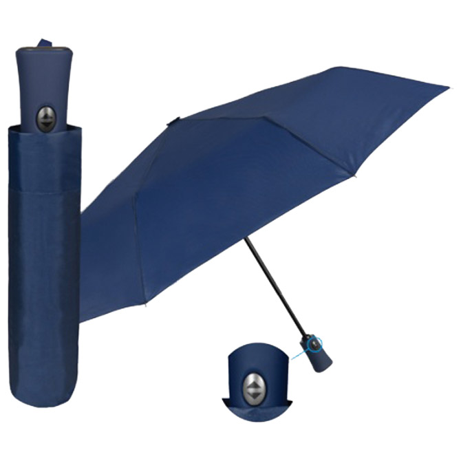 Kišobran automatik (otvaranje+zatvaranje na gumb) sklopivi s gumiranom drškom Promo Mini Lovers Perletti 96009-02 plavi