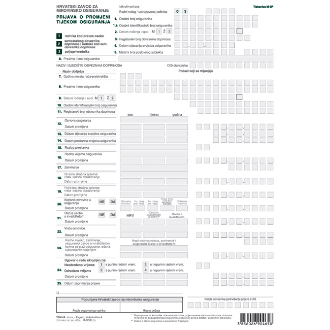 Obrazac M-3P/E – set prijava pk10 Fokus