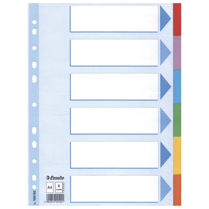 Pregrada kartonska A4 kolor 6listova Esselte 100192